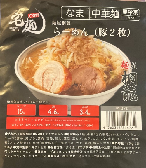 埼玉県の川口に本店がある「麺屋 桐龍」らーめんです。
