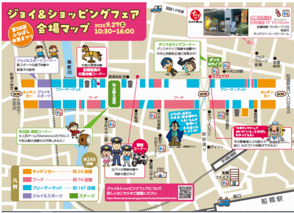 出店も船橋駅南口交差点から大神宮下交差点までが歩行者天国となってました。