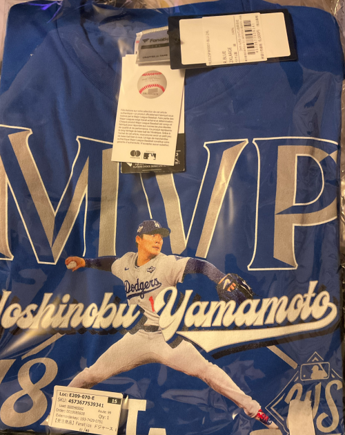 山本投手のワールドシリーズMVP Tシャツが届きました