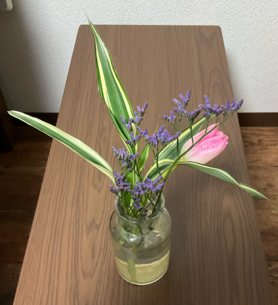 今週のお花(チューリップ、サンデリアーナホワイト、ハイブリッドスターチス)